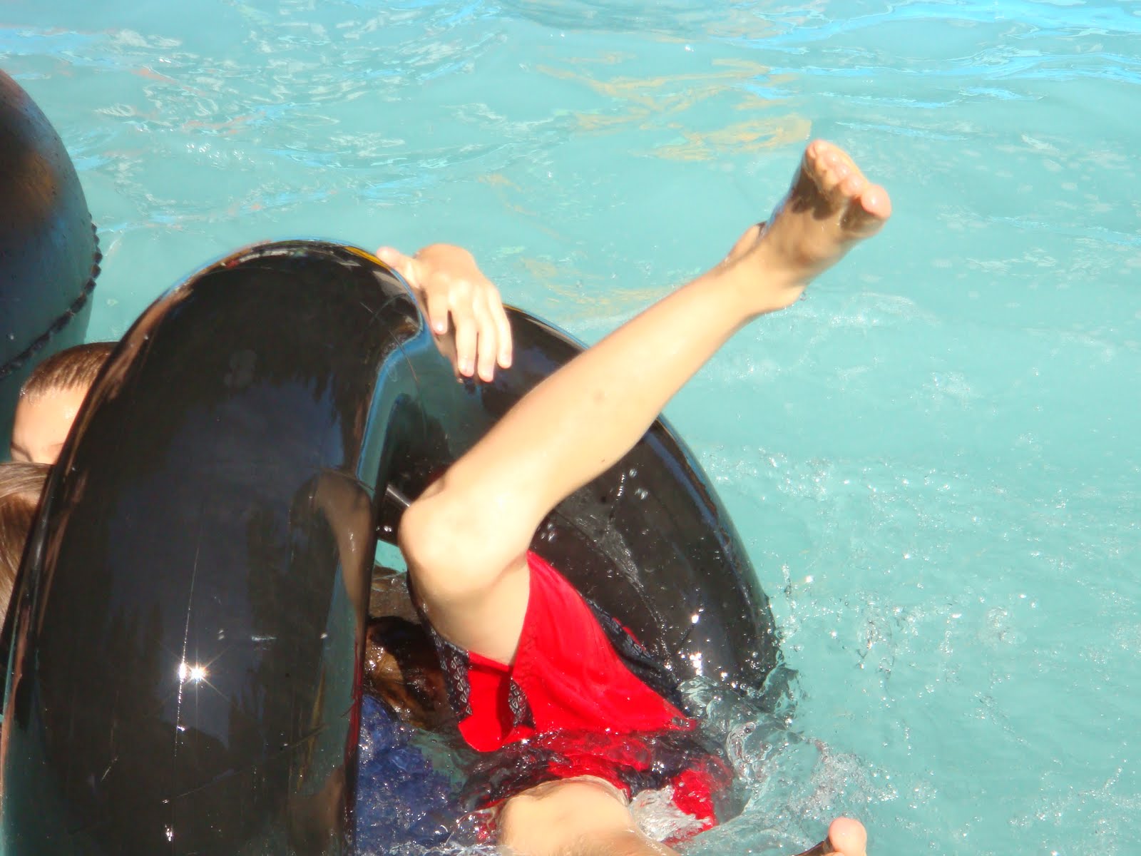 Lukas would not get in the water without clinging to Doug, but he wanted the outfit on to play the part.